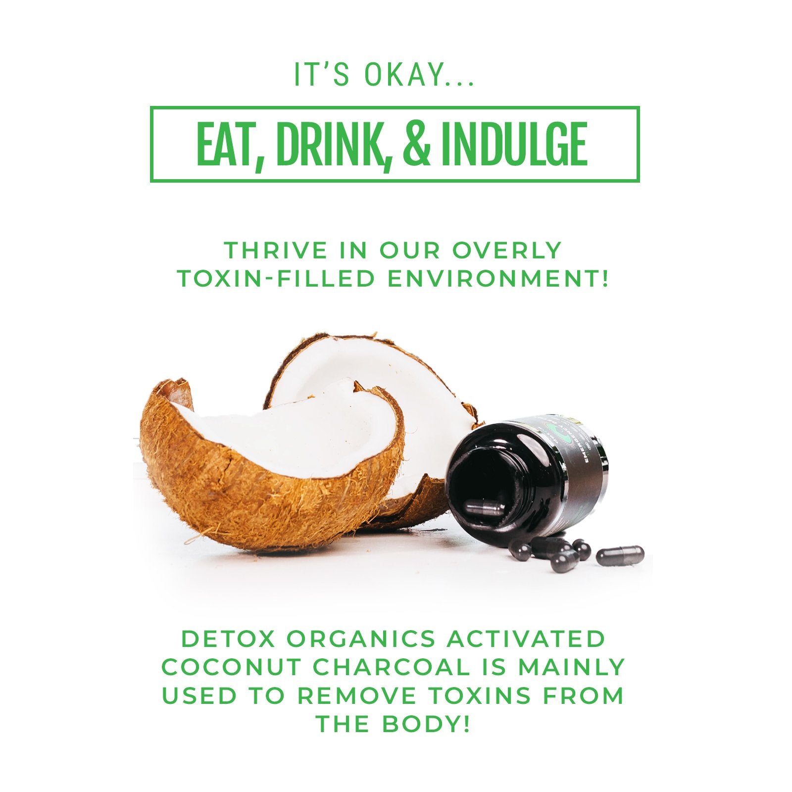 The Ultimate Hangover Cure! Our Emergency Detox (aka Activated Coconut Charcoal) quickly binds to any toxins or foreign substances and gets rid of them fast!
